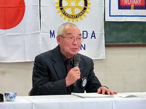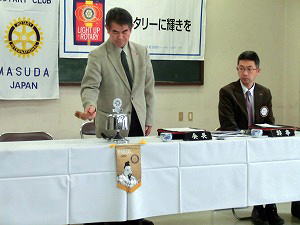 食事の後で,会長挨拶と幹事報告があります。会長挨拶では,その年度の会長が時事問題なども取り入れて短時間のスピーチを行い,幹事報告ではクラブ幹事からロータリーの行事などの報告があります。
